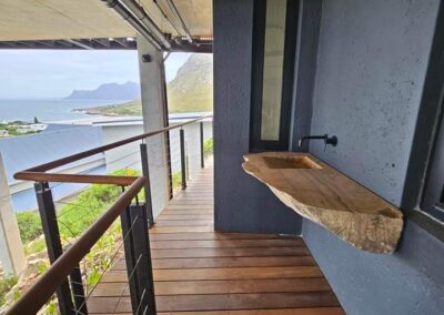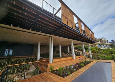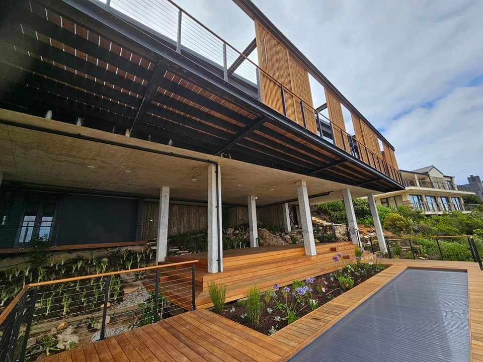 Proof yet again that great and well design, constructed home’s never ages, the simplicity of this dazzling concrete glass and steel architectural home in Rooi Els hawk’s back to the Forties yet is utterly contemporary. The long, low, streamline structure is remarkable in it’s seamless blurring of the boundaries between the indoors and outdoors. The home touches the earth lightly and looking at how it is suspended in its setting, it’s obvious how much respect the structure has for the surrounded area.