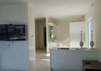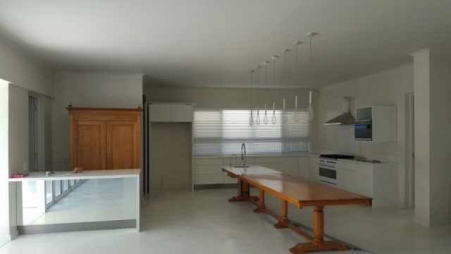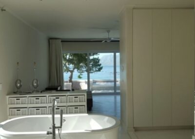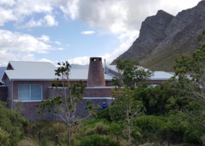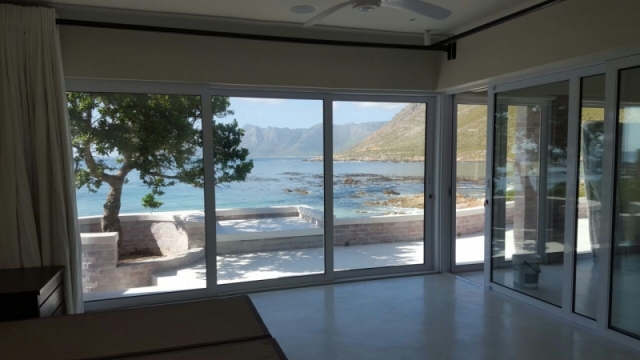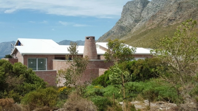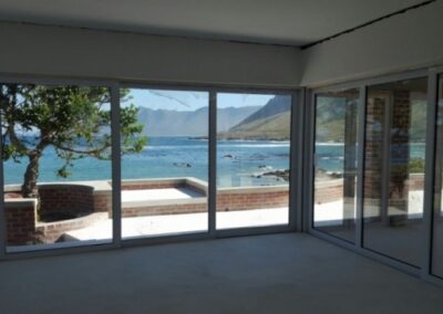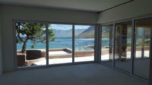Modern home on the sea front in Rooi Els Valley, earthy floors and big open windows add to the character of this construction. Modern finishes was used through out the house.
