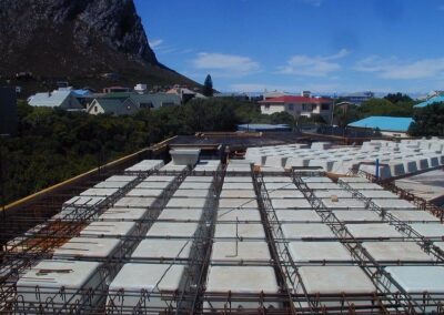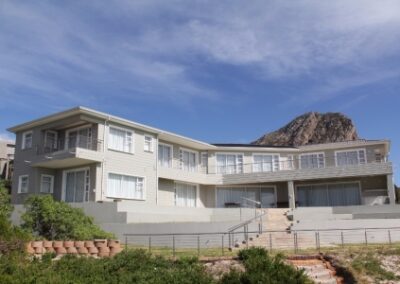 A 9 bedroom, 2 staircase home was a challenge in itself while also ensuring that the natural wildlife and fynbos are protected against all building works. This mansion stands on the rocky shores of Rooi Els featuring huge living spaces, fully automated, imported wooden flooring, exterior sand stone tiling, skylights for natural light and steel balustrades.